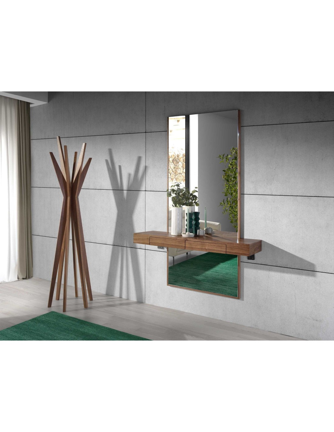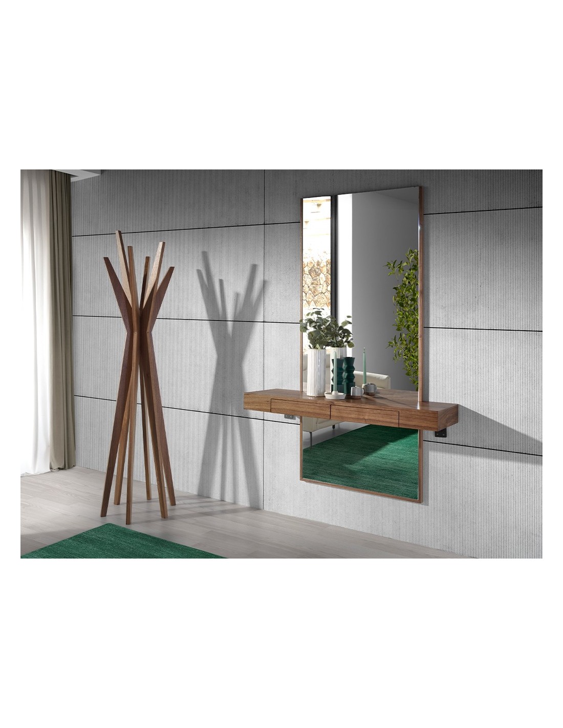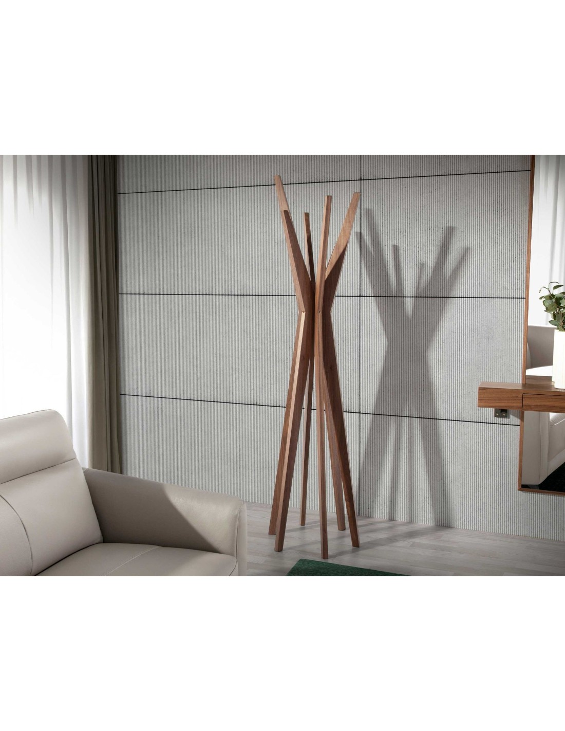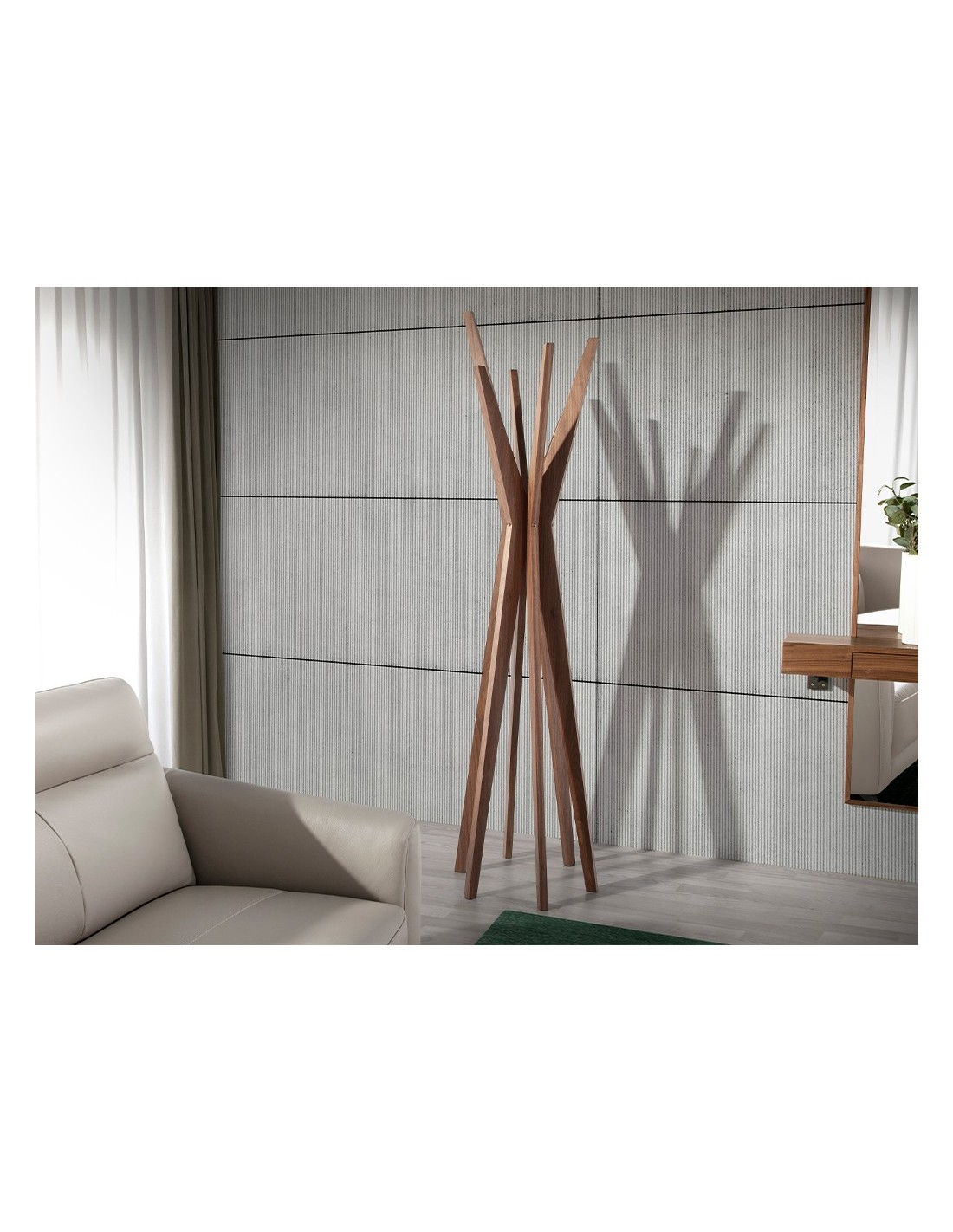 Perchero madera nogal Perchero con estructura en madera chapada en nogal.Medidas del producto: 50 x 50 x 190 cm.- La forma de su estructura y su acabado de diseño moderno ofrece la mejor combinación entre estilo y funcionalidad.- Este versátil perchero aportará un toque distintivo y vanguardista a cualquier tipo de estancia.- Todos nuestros productos están fabricados con materiales de la más alta calidad, siendo garantía de mobiliario duradero y funcional.- Este original perchero geométrico de madera chapada nogal es la opción perfecta para aportar ese toque elegante que busca para su hogar.- Por sus dimensiones y estilo, será la pieza ideal para organizar su ropa y accesorios, siendo además un elemento práctico y decorativo en su casa.- Perchero con seis perchas a diferentes alturas para colgar su ropa y accesorios, manteniendo el orden y la organización de su estancia.