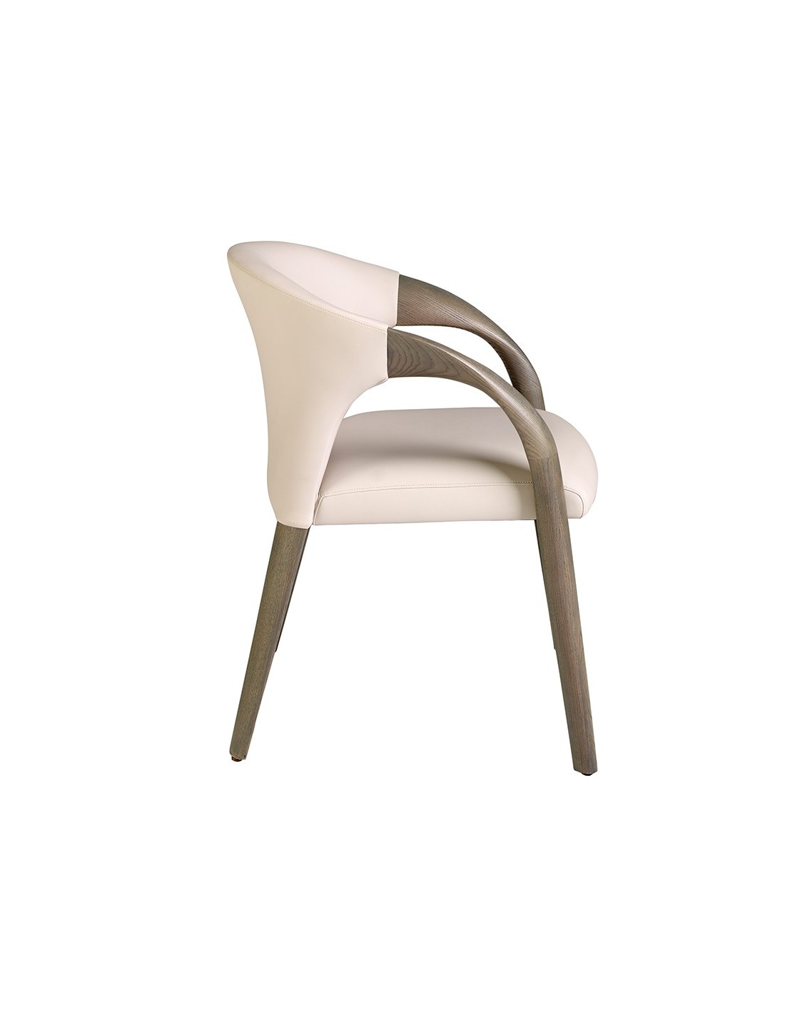 Silla polipiel crema Silla con reposabrazos de diseño moderno con asiento y respaldo tapizados en polipiel color crema. Sus patas de madera de roble en color ceniza de estilo vanguardista a la vez que atemporal, la convertirán en el must have de su cocina o comedor. Esta silla de la firma Angel Cerdá, aúna el estilo único y personal de la marca, así como la mayor comodidad y estabilidad, gracias a la alta calidad de su tapizado y la original estructura de patas.Medidas del producto: 62 x 61 x 78 cm.- Gracias al tapizado en polipiel de esta silla de comedor, conseguirá el toque distintivo y diferente que busca para su zona de comedor. - La originalidad de sus patas aúnan el estilo más vanguardista de nuestra marca con la mayor calidad y comodidad. - Si busca la silla de comedor perfecta para su hogar, ésta es una opción ideal para aunar el toque moderno y de vanguardia que necesita, con la mayor calidad y funcionalidad. - Tanto por el tamaño de su asiento y su relleno en espuma de poliuretano de 25kg/m3, así como su cómodo respaldo le permitirá contar con el máximo confort, sin dejar de lado el diseño más actual.