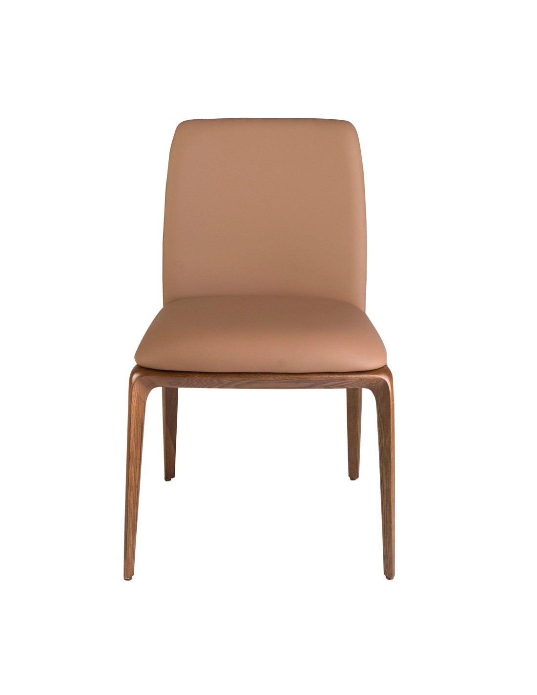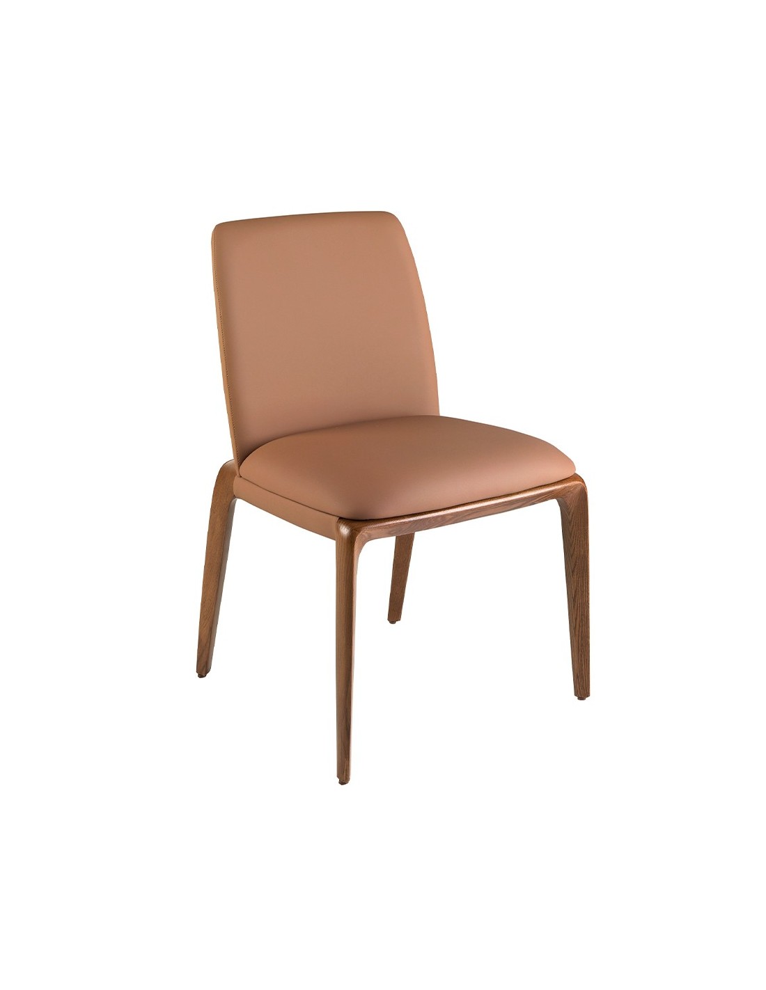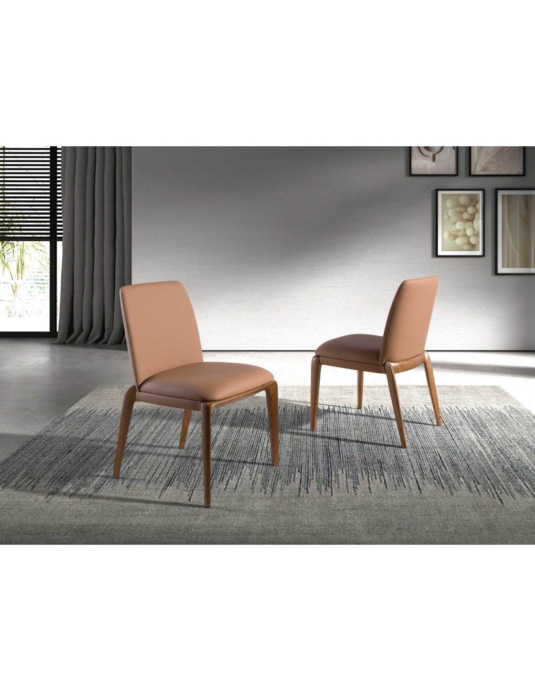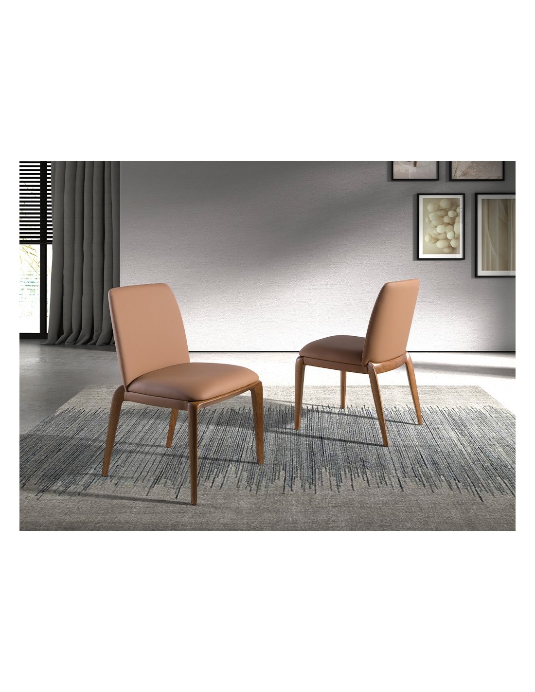 Silla polipiel marrón Silla de diseño moderno con asiento y respaldo tapizados en polipiel color marrón. Sus patas de madera en color nogal de estilo vanguardista a la vez que atemporal, la convertirán en el must have de su cocina o comedor. Esta silla de la firma Angel Cerdá, aúna el estilo único y personal de la marca, así como la mayor comodidad y estabilidad, gracias a la alta calidad de su tapizado y la original estructura de patas.Medidas del producto: 52 x 60 x 83 cm.- La combinación del tapizado en polipiel con la madera color nogal de las patas, la hace una silla perfecta para aportar calidez y elegancia al espacio. - Sus patas robustas y de carácter lineal permite combinarla con cualquier mesa de comedor de nuestro catálogo. - El diseño moderno de esta silla de comedor la convierten en una pieza clave para crear ambientes elegantes y funcionales. - Tanto por el tamaño de su asiento y su relleno en espuma de poliuretano de 25kg/m3, así como su cómodo respaldo le permitirá contar con el máximo confort, sin dejar de lado el diseño más actual.