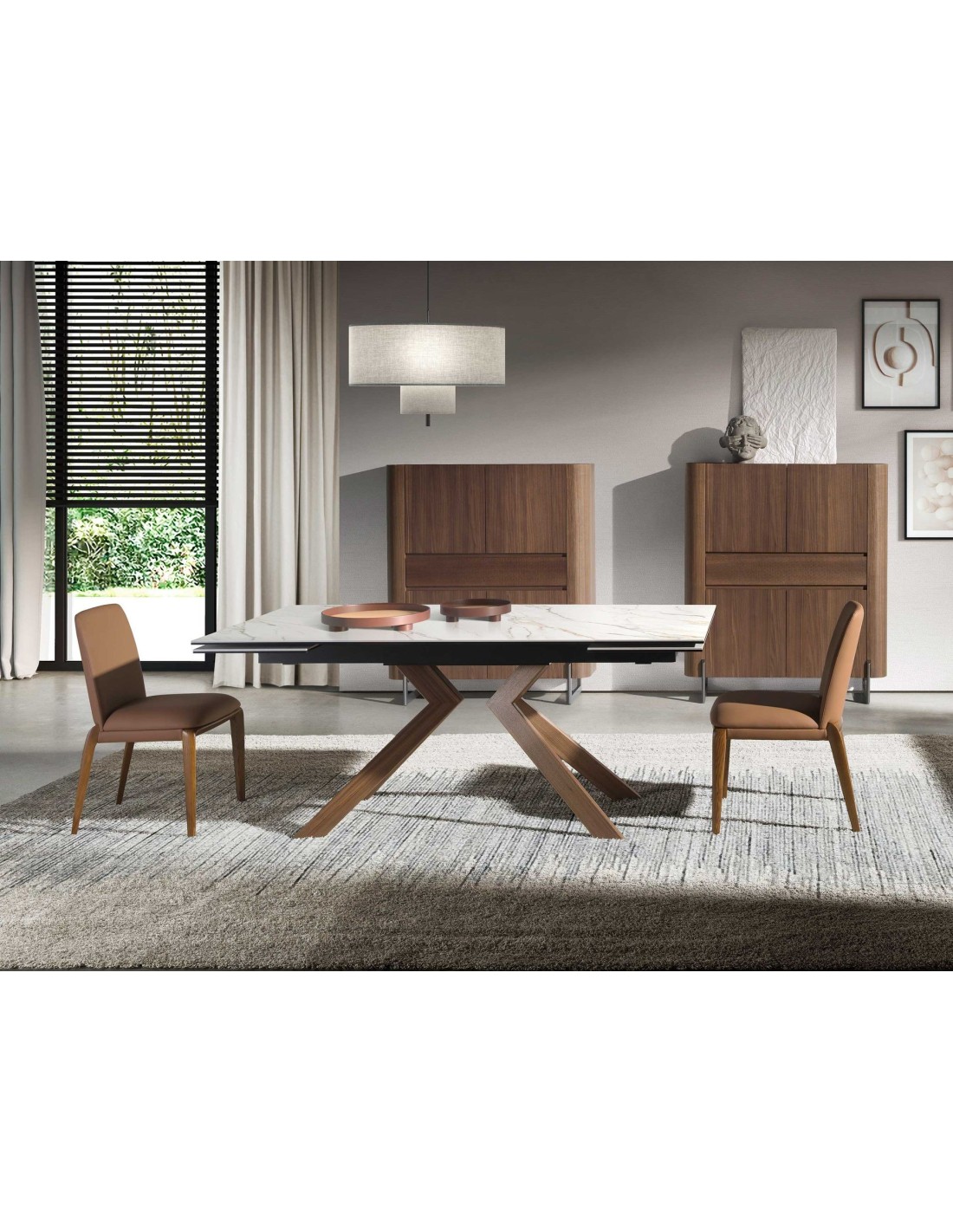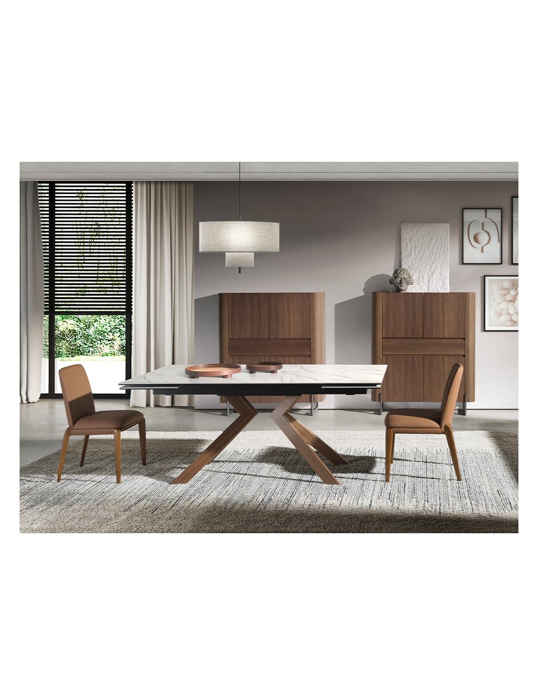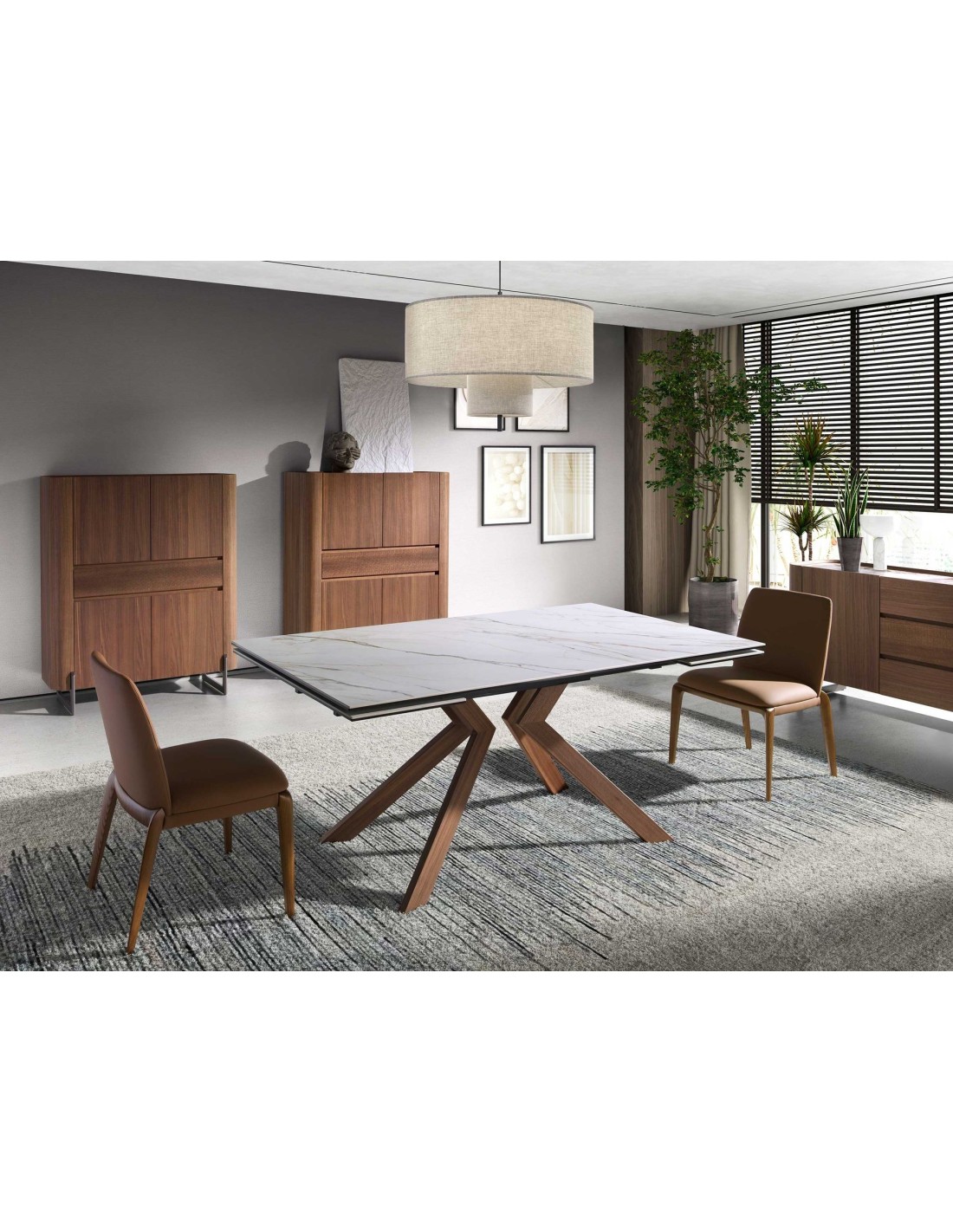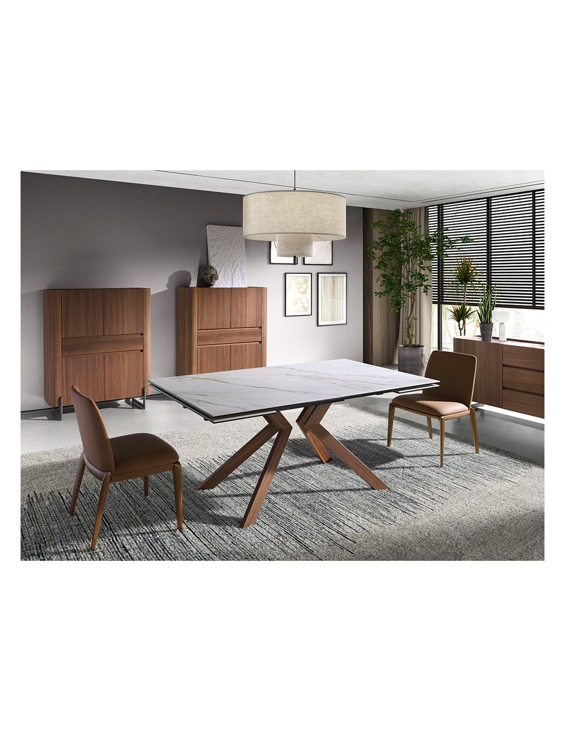 Silla polipiel marrón Silla de diseño moderno con asiento y respaldo tapizados en polipiel color marrón. Sus patas de madera en color nogal de estilo vanguardista a la vez que atemporal, la convertirán en el must have de su cocina o comedor. Esta silla de la firma Angel Cerdá, aúna el estilo único y personal de la marca, así como la mayor comodidad y estabilidad, gracias a la alta calidad de su tapizado y la original estructura de patas.Medidas del producto: 52 x 60 x 83 cm.- La combinación del tapizado en polipiel con la madera color nogal de las patas, la hace una silla perfecta para aportar calidez y elegancia al espacio. - Sus patas robustas y de carácter lineal permite combinarla con cualquier mesa de comedor de nuestro catálogo. - El diseño moderno de esta silla de comedor la convierten en una pieza clave para crear ambientes elegantes y funcionales. - Tanto por el tamaño de su asiento y su relleno en espuma de poliuretano de 25kg/m3, así como su cómodo respaldo le permitirá contar con el máximo confort, sin dejar de lado el diseño más actual.