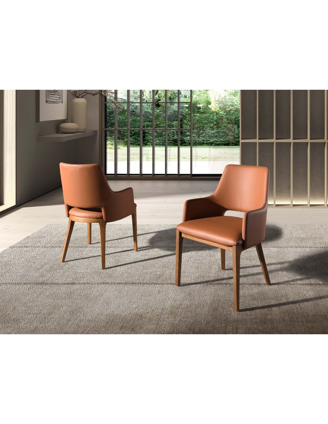 Silla polipiel marrón Silla con reposabrazos de diseño moderno con asiento y respaldo tapizados en polipiel color marrón. Sus patas de madera chapada en nogal natural de estilo vanguardista a la vez que atemporal, la convertirán en el must have de su cocina o comedor. Esta silla de la firma Angel Cerdá, aúna el estilo único y personal de la marca, así como la mayor comodidad y estabilidad, gracias a la alta calidad de su tapizado y la original estructura de patas.Medidas del producto: 54 x 61 x 83 cm.- Gracias al tapizado en polipiel de esta silla de comedor, conseguirá el toque distintivo y diferente que busca para su zona de comedor. - La madera color nogal de sus patas aporta el toque de calidez y elegancia que busca para su hogar. - El diseño moderno de esta silla de comedor la convierten en una pieza clave para crear ambientes elegantes y funcionales. - El tamaño de su asiento relleno de espuma de poliuretano de 30kg/m3, le permitirá contar con el máximo confort, sin dejar de lado la más alta tendencia.