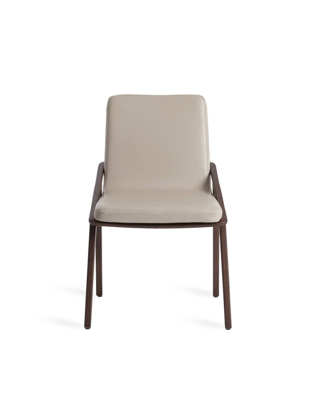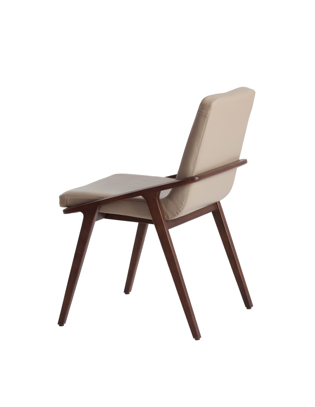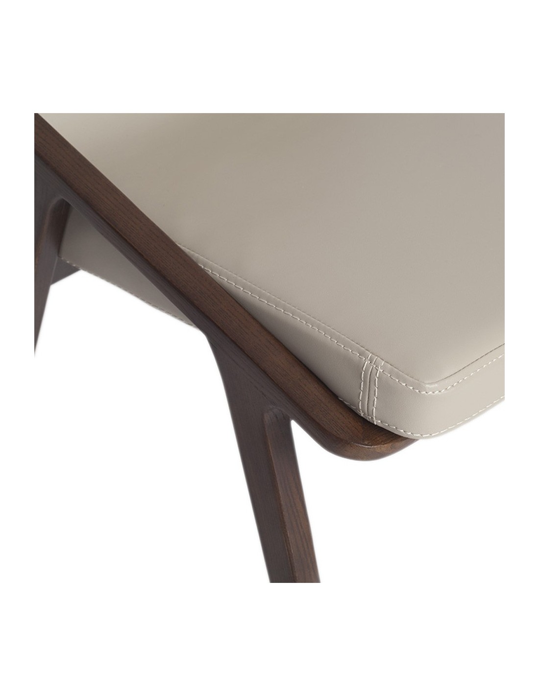 Silla polipiel visón Silla de diseño moderno con asiento y respaldo tapizados en polipiel color visón. Sus patas de madera en color nogal de estilo vanguardista a la vez que atemporal, la convertirán en el must have de su cocina o comedor. Esta silla de la firma Angel Cerdá, aúna el estilo único y personal de la marca, así como la mayor comodidad y estabilidad, gracias a la alta calidad de su tapizado y la original estructura de patas.Medidas del producto: 54 x 59 x 80 cm.- La combinación del tapizado en polipiel con la madera color nogal de las patas, la hace una silla perfecta para aportar calidez y elegancia al espacio. - Sus patas robustas y de carácter lineal permite combinarla con cualquier mesa de comedor de nuestro catálogo. - Su diseño versátil y funcional, la convierte en una silla ideal para cualquier tipo de salón, comedor o cocina. - Tanto por el tamaño de su asiento y su relleno en espuma de poliuretano de 25kg/m3, así como su cómodo respaldo le permitirá contar con el máximo confort, sin dejar de lado el diseño más actual.