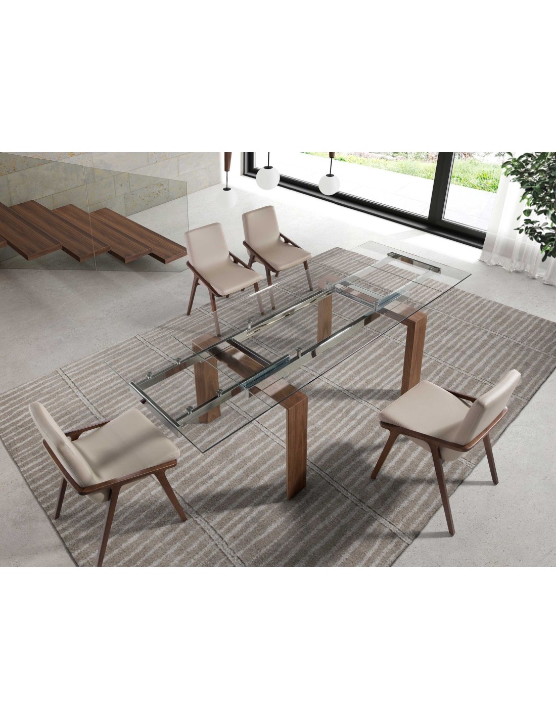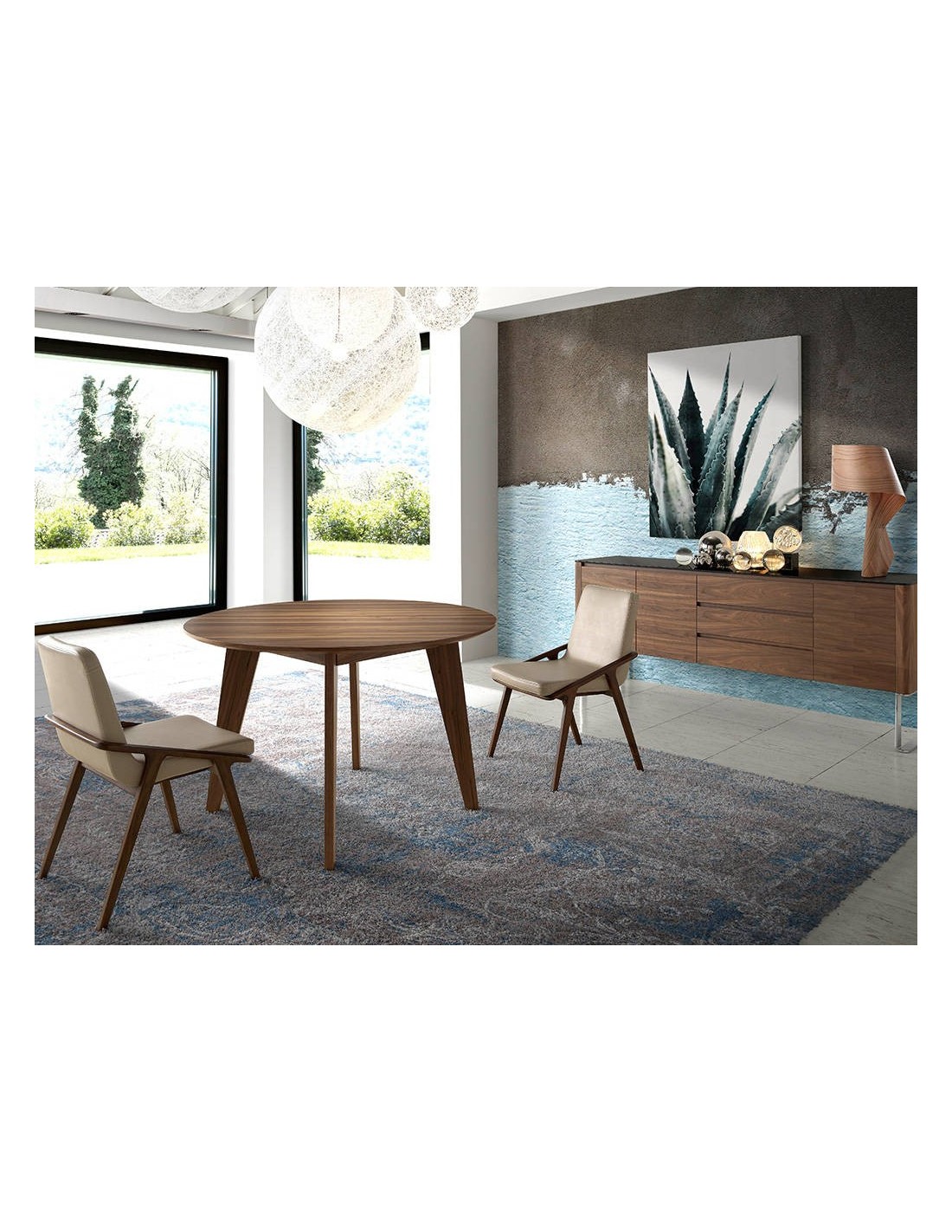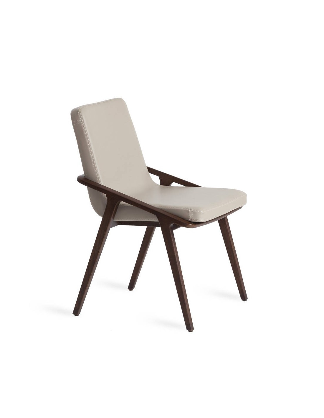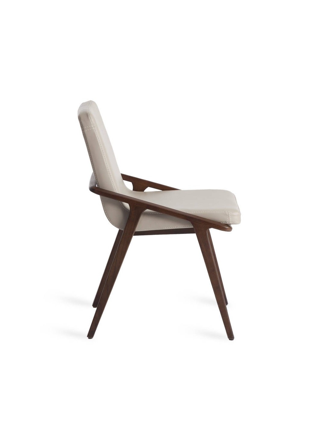 Silla polipiel visón Silla de diseño moderno con asiento y respaldo tapizados en polipiel color visón. Sus patas de madera en color nogal de estilo vanguardista a la vez que atemporal, la convertirán en el must have de su cocina o comedor. Esta silla de la firma Angel Cerdá, aúna el estilo único y personal de la marca, así como la mayor comodidad y estabilidad, gracias a la alta calidad de su tapizado y la original estructura de patas.Medidas del producto: 54 x 59 x 80 cm.- La combinación del tapizado en polipiel con la madera color nogal de las patas, la hace una silla perfecta para aportar calidez y elegancia al espacio. - Sus patas robustas y de carácter lineal permite combinarla con cualquier mesa de comedor de nuestro catálogo. - Su diseño versátil y funcional, la convierte en una silla ideal para cualquier tipo de salón, comedor o cocina. - Tanto por el tamaño de su asiento y su relleno en espuma de poliuretano de 25kg/m3, así como su cómodo respaldo le permitirá contar con el máximo confort, sin dejar de lado el diseño más actual.