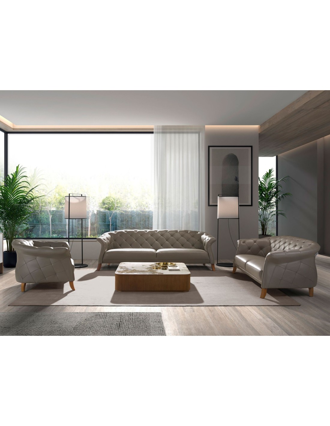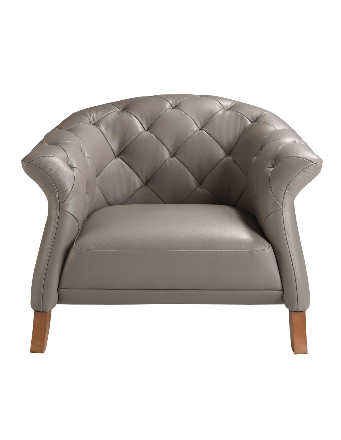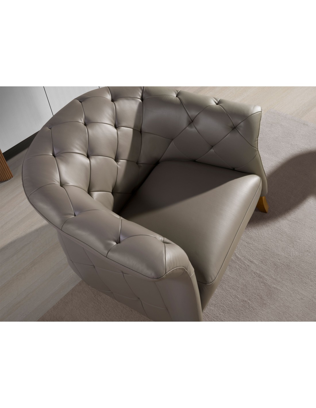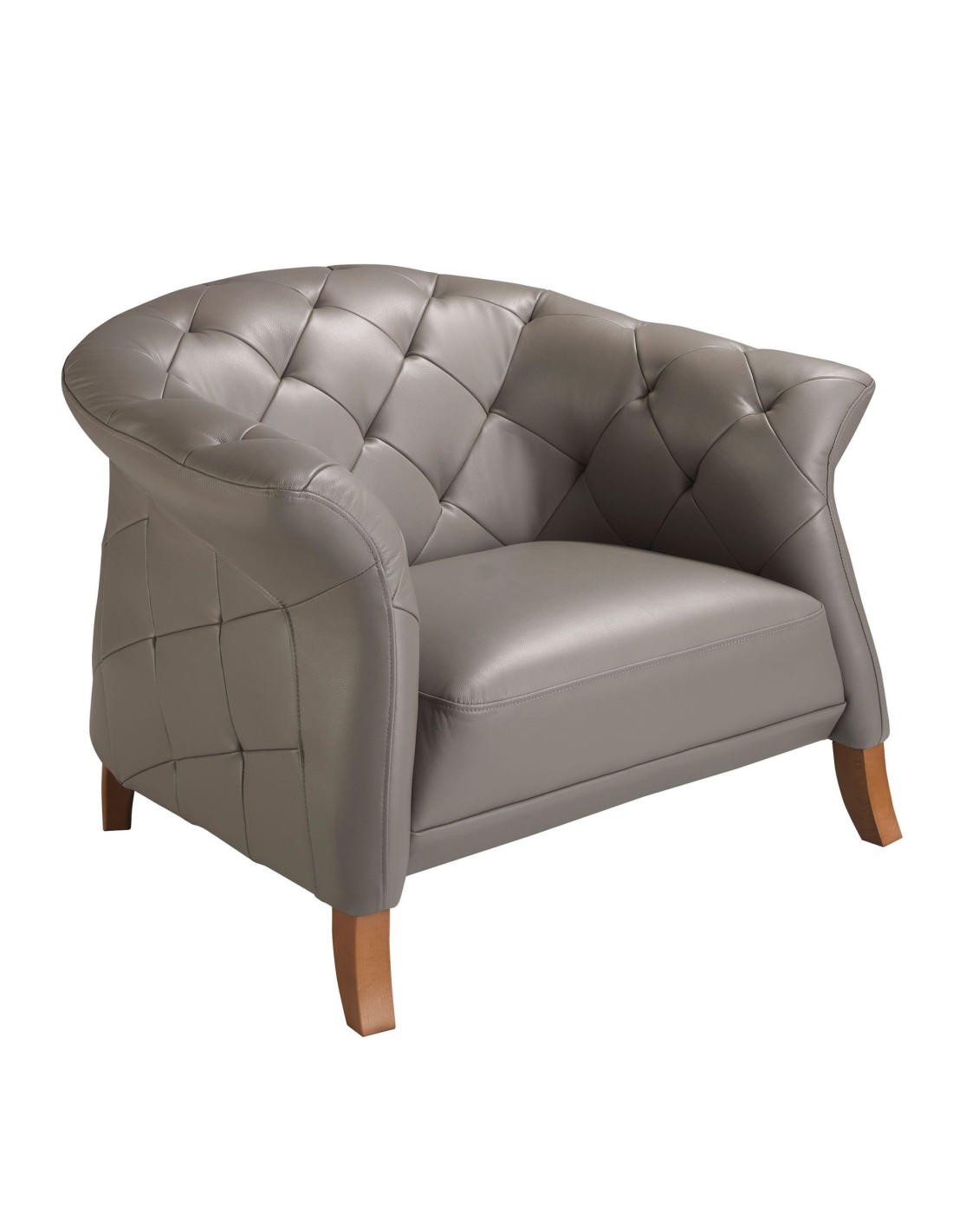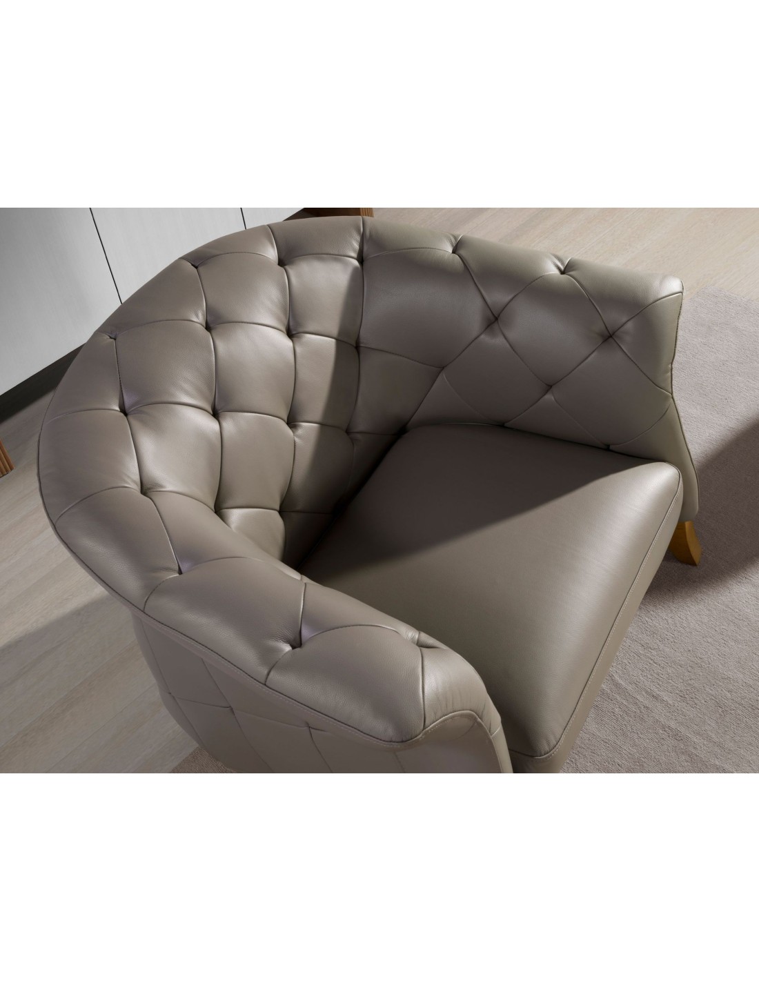 Sillón Chester piel gris Sillón Chester con reposabrazos de diseño moderno con asiento y respaldo tapizados en piel de origen vacuno color gris. Tanto por su estilo, como por sus patas de madera en color miel, este sillón chester es la combinación perfecta entre diseño y confort.Medidas del producto: 112 x 99 x 81 cm.- El tapizado en piel de este sillón aportará elegancia y distinción, siendo además una pieza funcional a la vez que decorativa para sus estancias. - La originalidad de sus patas aúnan el estilo más vanguardista de nuestra marca con la mayor calidad y comodidad. - Tanto por el tamaño de su asiento y su relleno en espuma de poliuretano de 25kg/m3, así como su cómodo respaldo le permitirá contar con el máximo confort, convirtiéndose en una pieza clave para sus momentos de relax o descanso. - El acabado capitoné en el respaldo de este sillón confidente, brinda un toque diferente y exclusivo. Una pieza de estilo moderno pensada para relajarse y disfrutar de la mayor comodidad.