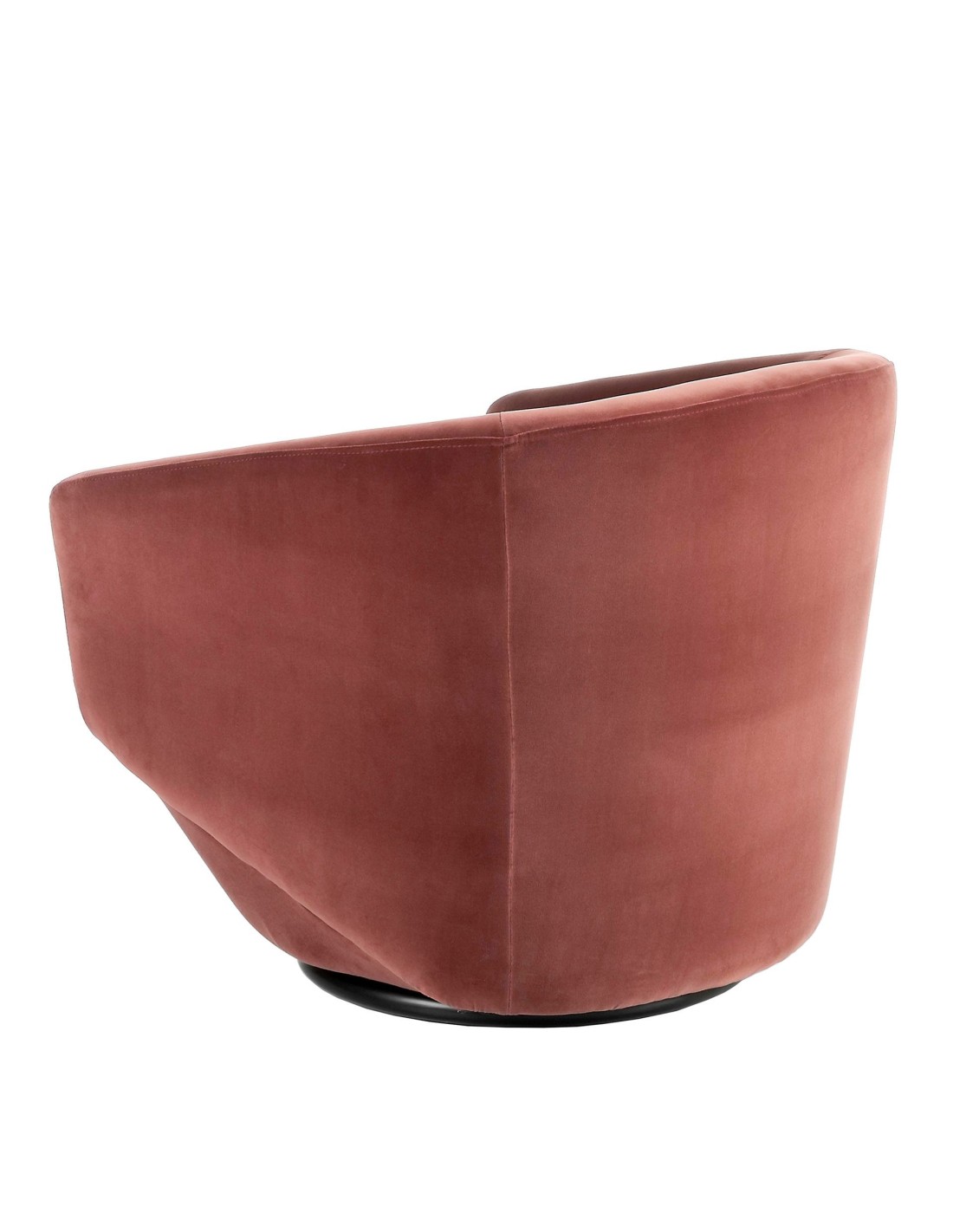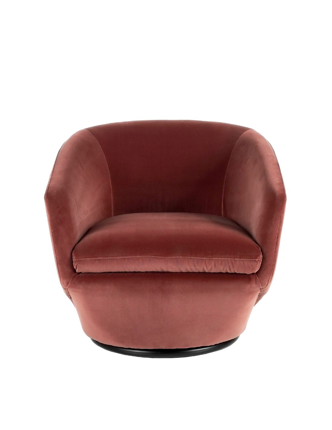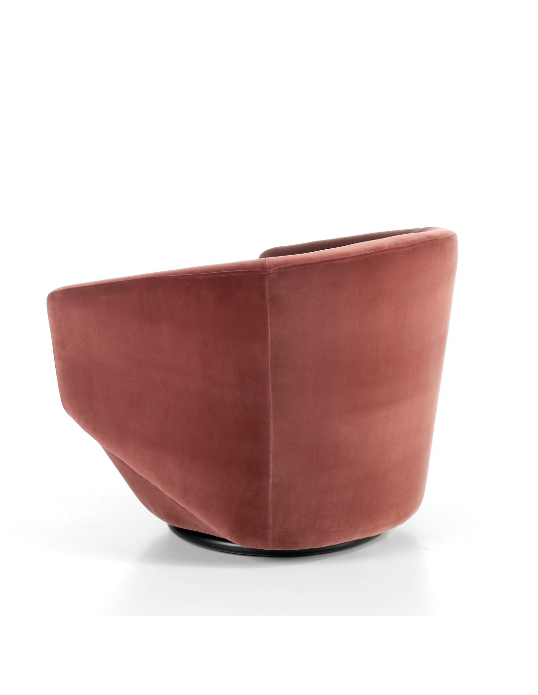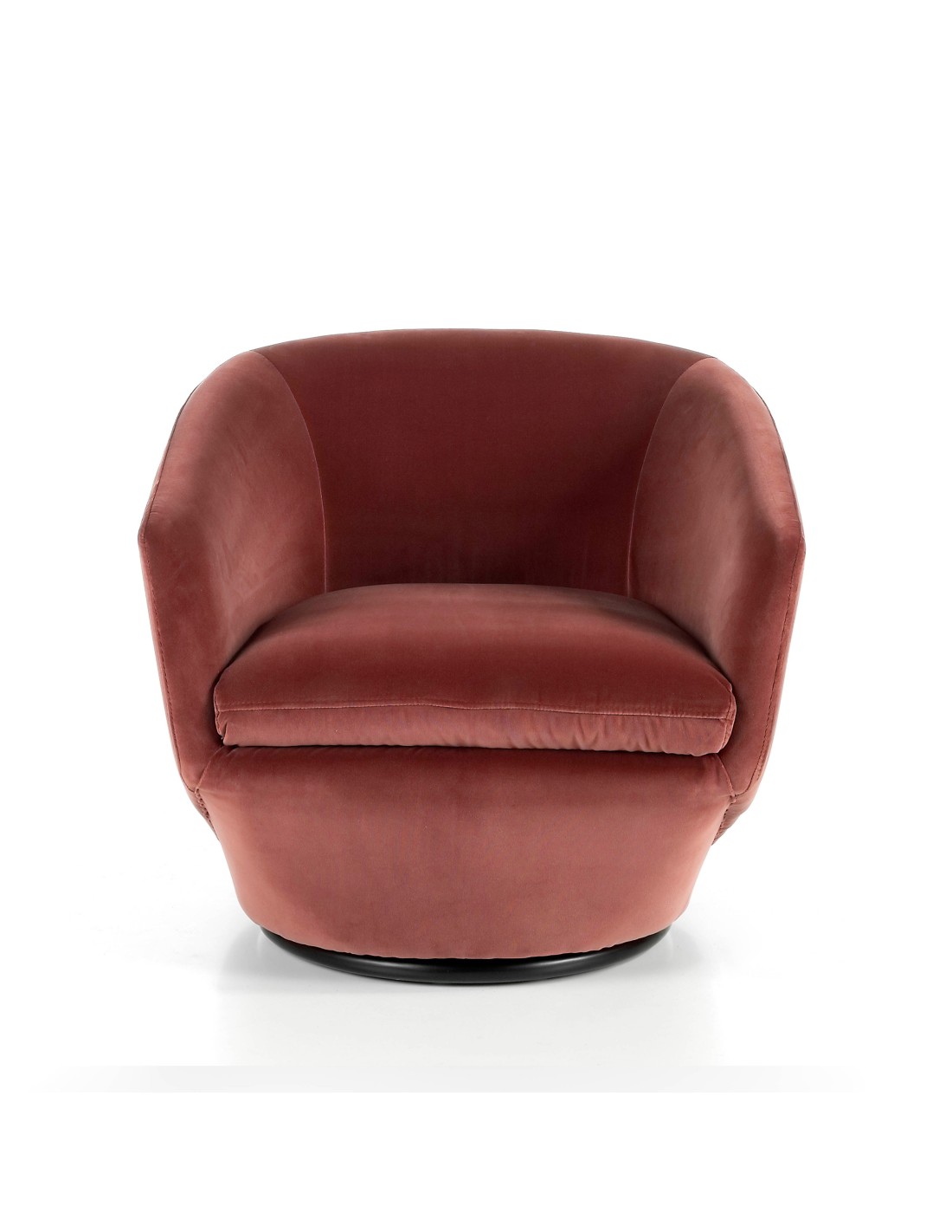 Sillón giratorio terciopelo melocotón Sillón giratorio con reposabrazos de diseño moderno con asiento y respaldo tapizados en tela aterciopelada color melocotón. Tanto por su estilo, como por sus patas de acero inoxidable oscurecido, este sillón giratorio es la combinación perfecta entre diseño y confort.Medidas del producto: 78 x 78 x 70 cm.- El tapizado en tela aterciopelada de este sillón aportará un toque único y diferente, siendo un elemento práctico perfecto para su salón, zona de lectura o descanso. - Tanto por el tamaño de su asiento y su relleno en espuma de poliuretano de 25kg/m3, así como su cómodo respaldo le permitirá contar con el máximo confort, sin dejar de lado el diseño más actual. - Con sistema giratorio, aporta ese plus de practicidad y funcionalidad que busca para su hogar, sin dejar de lado la máxima elegancia.